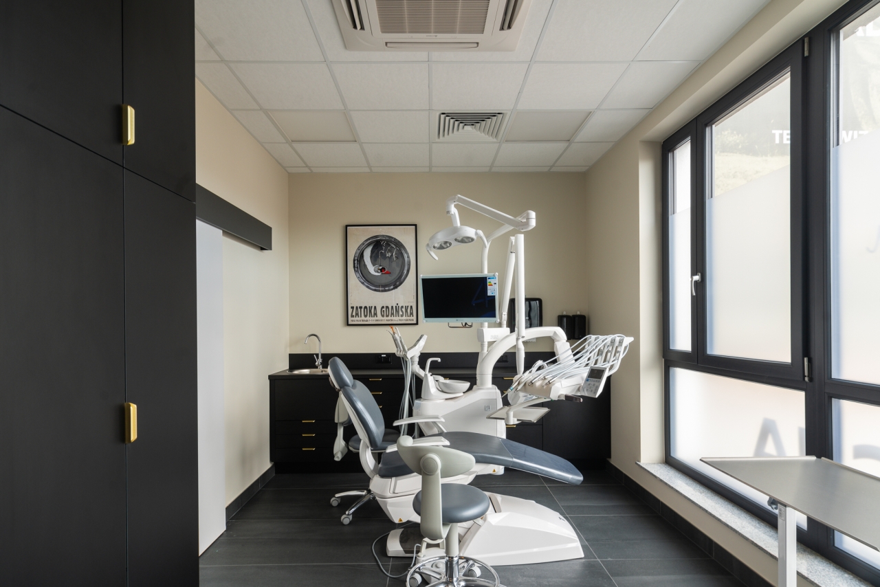 Nowe centrum stomatologiczne zostało tak zaprojektowane, aby pacjent nie czuł się jak u dentysty. Starannie dobrane kolory i materiały wykończeniowe, a także muzyka mają na celu wyciszyć go przed zabiegiem, zapewnić komfort emocjonalny i sprawić, że wizyta przebiegnie bez stresu i lęku.