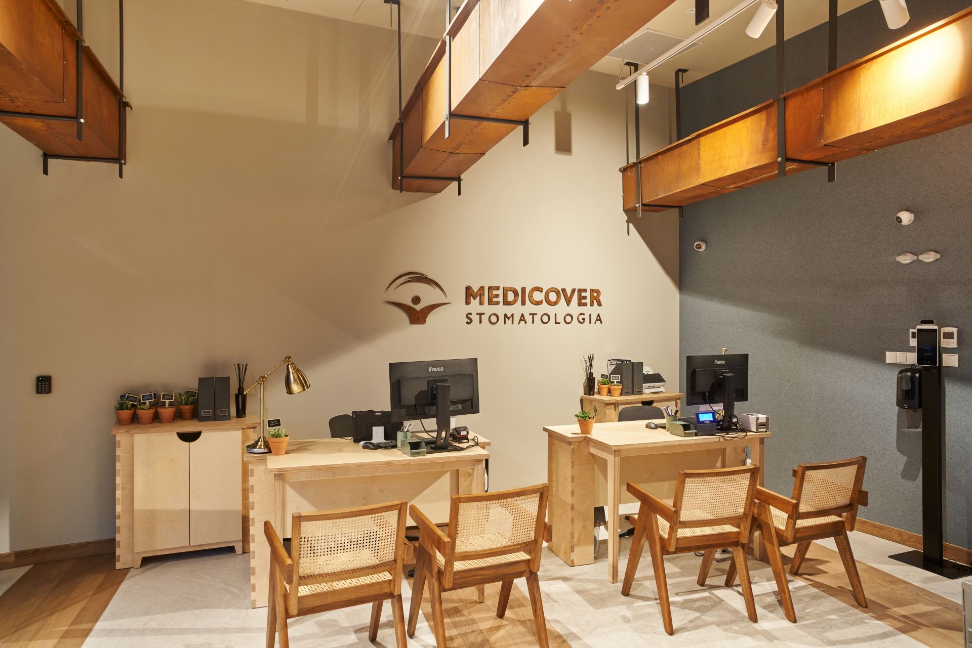 Te „zielone” elementy w Medicover Stomatologia w Sparku można znaleźć na każdym kroku, chociażby w tym, jak i czym zaaranżowano przestrzeń. Znaczna część mebli, która pojawiła się w centrum powstała z surowców przetworzonych np. desek ze starych stodół. Nie brakuje także mebli ze znanych sieci, ale z obiegu zamkniętego, a także mebli z odzysku wykonanych z materiałów odnawialnych i łatwych do ponownego przetworzenia.