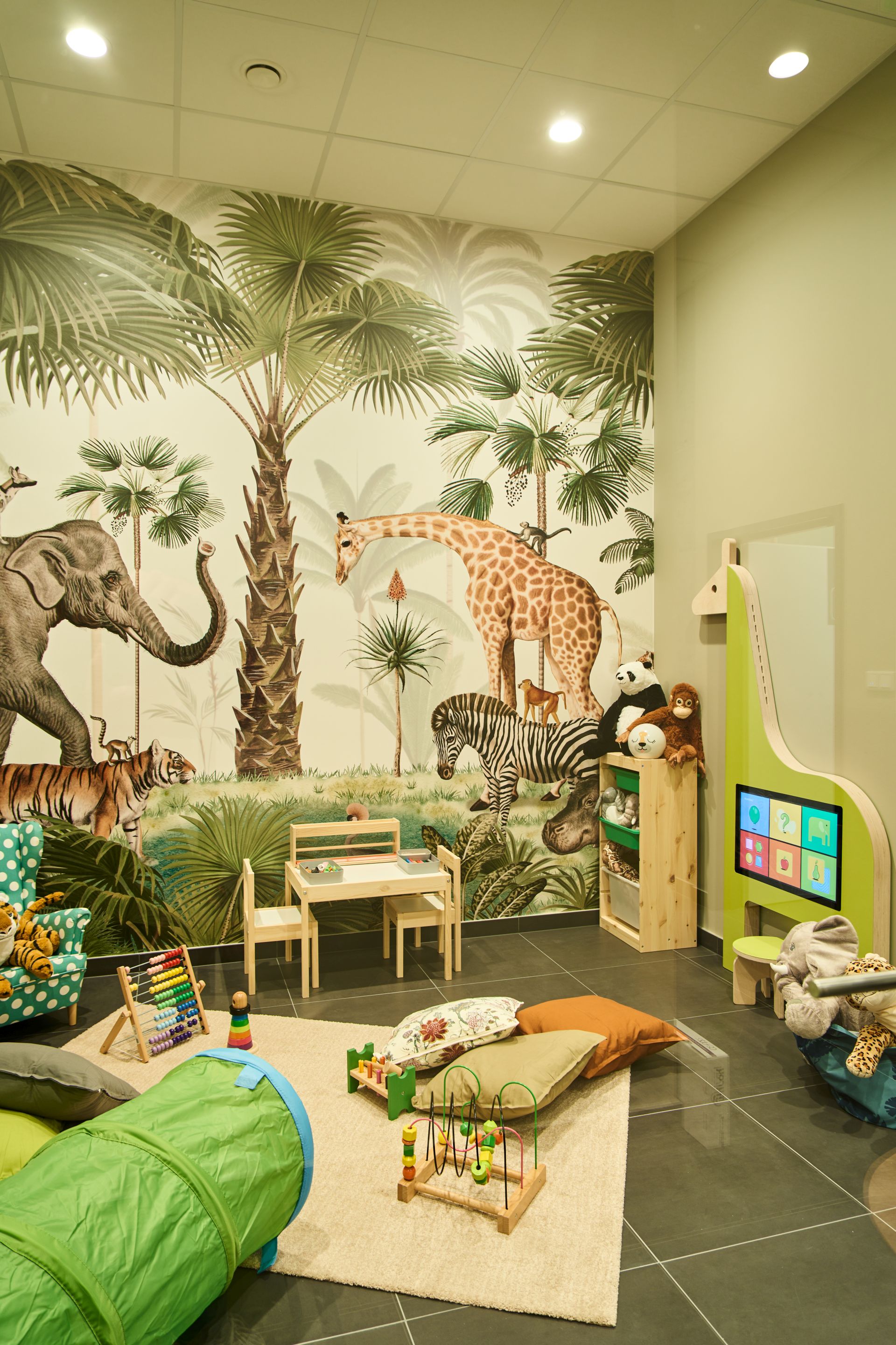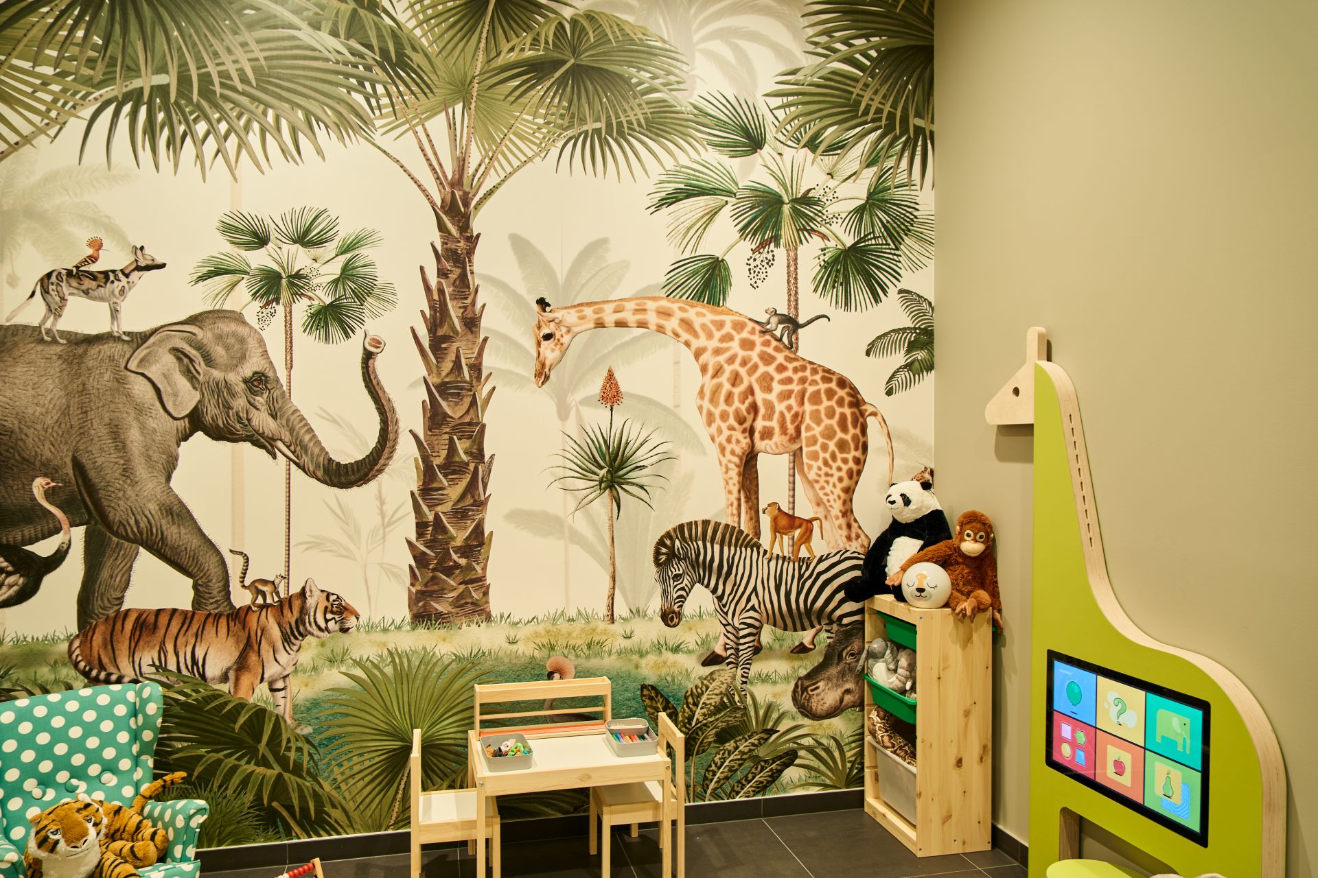 W centrum powstała także specjalna strefa dla dzieci, w której można znaleźć zabawki, ale także ekrany dotykowe w kształcie żyrafy, na których najmłodsi mogą grać w gry, relaksując się przed wizytą.