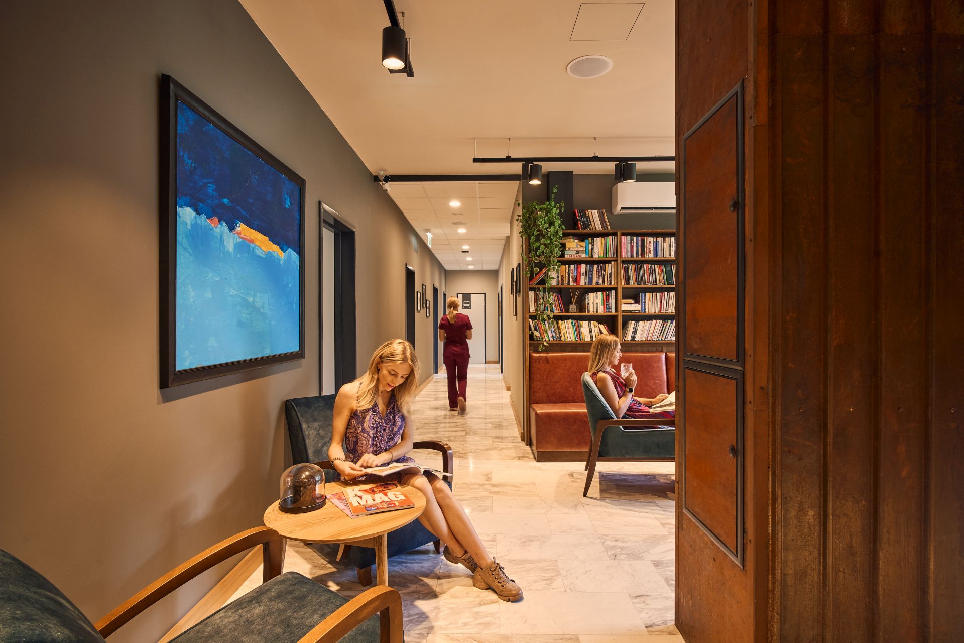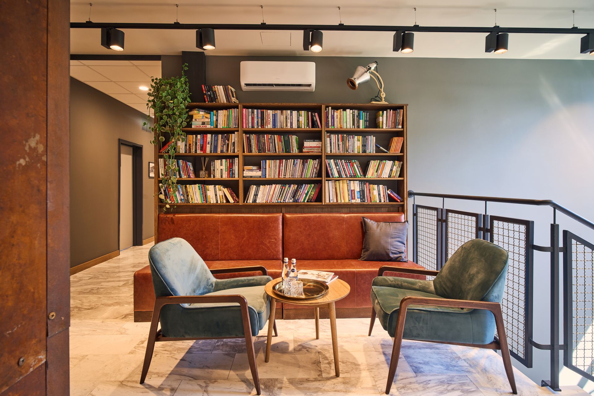 Pojawia się on także w elementach dekoracyjnych, w tym w olbrzymiej biblioteczce wypełnionej książkami, która dominuje nad poczekalnią. Kolonialnym akcentem jest natomiast duży drewniany stół przypominający sklepową ladę oraz egzotyczna roślinność. Klimat dawnych muranowskich kamienic przywołuje natomiast ściana z surowej cegły. Za projekt wnętrza odpowiadała warszawska pracownia Piotrowscy Design.