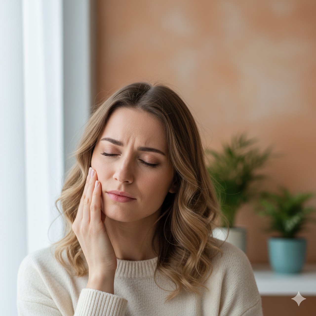 Ból w okolicy stawu (lub stawów) skroniowo-żuchwowego, nasilający się podczas jedzenia, żucia czy nawet dłuższej rozmowy, to jeden z najczęstszych objawów TMD. Wynika on zwykle z przeciążenia mięśni żucia lub nieprawidłowej pracy krążka stawowego, który pełni rolę „poduszki” amortyzującej ruchy żuchwy. Bólowi może towarzyszyć uczucie osłabienia, znużenia żuchwy, podobne do zakwasów po wysiłku fizycznym. Jeśli ból pojawia się regularnie, to sygnał, że staw nie pracuje prawidłowo i może wymagać diagnostyki.