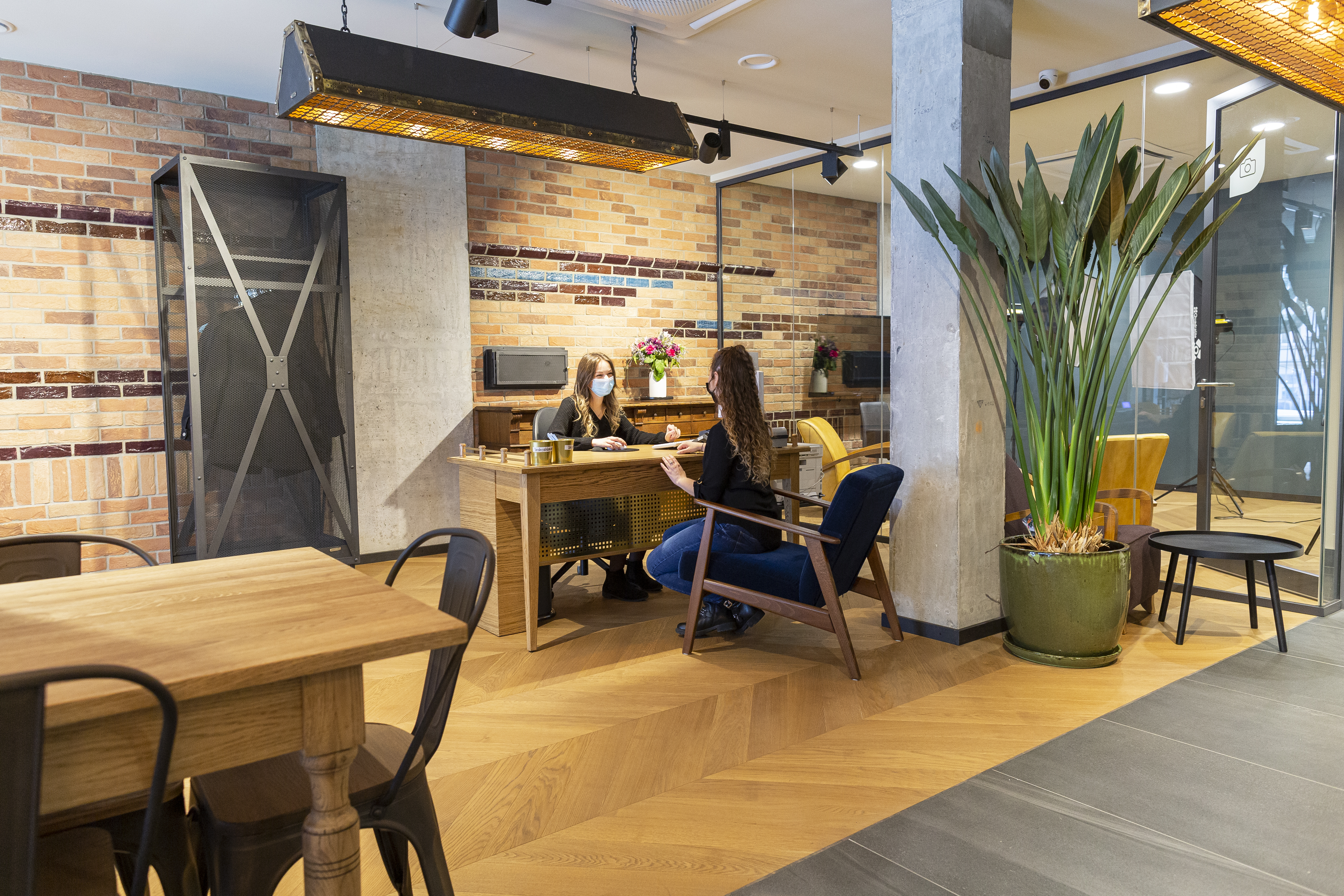 W projekcie wnętrza zastosowano także rdzewioną blachę typu Corten oraz drewno. Ten dialog z przeszłością widać także w umeblowaniu, chociażby poczekalni czy pokoju wybudzeń z narkozy, które nawiązuje do dawnych, fabrycznych funkcji tego miejsca, a także w wielkoformatowych archiwalnych zdjęciach z zakładu i Pragi, jakie można znaleźć w gabinetach. Te pochodzą z zasobów m.in. Muzeum Polskiej Wódki i Centrum Praskiego Koneser. Historii nie maskują nawet ściany. Zamiast nich w niektórych pomieszczeniach zastosowano lekkie i przezierne szklane ścianki o metalowej konstrukcji. O industrialnym charakterze przypominają także znajdujące się w recepcji repliki dawnego oświetlenia hal fabrycznych.